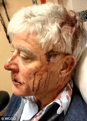 After the incident, Mr Andrew was taken to Fairview Southdale Hospital where he received nine stitches to mend the large gash on his head. Police say he also had bruises and abrasions on his face.