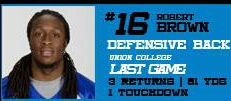 During their last game, against Green Bay Blizards (the second game of the season) Robert Brown returned a kickoff for a touchdown and also picked a pass off for an interception.