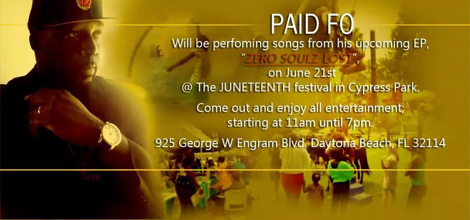 We captured raw footage of Paid Fo giving an excellent performance at the Juneteenth Festival here in Daytona Beach,Fl. His single, “How You Doing” has a positive message and a very catchy hook. Paid Fo moved the crowd as he gave some inspiration along the way. Click the link below to see his performance.